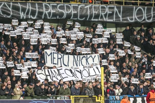 Brugge / Jupiler Pro League profs 1a Brugge / Jupiler Pro League profs 1a “Niet onze Club” en “Shame on you”: Club-supporters pakken uit met protestactie om Nicky Hayen te steunen 11 december 2025