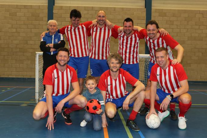 In de derde afdeling van het Roeselaars Minivoetbal speelt Spitseboys de play-off 1. Op de foto zien we boven van links naar rechts: ploegverantwoordelijke Rudy Mattyn, Dieter Casier, Dieter Vanthournout, Jens Desloovere en Bjorn Vandenbrouck. Onder van links naar rechts: Thijs David met zoontje Lucien, Davy Bonny en Maxim Buysse. (JV/foto JV)