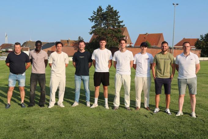 Lennart Sampers (FC Gullegem), Martijn Kirilov en Robbe Vandergunst (allebei KVDO), Gauthier Defour en Kevin Gallo (allebei KVK Westhoek), Mouhamed Sarr en Gilian Dewulf (allebei KSC Blankenberge) en Mathis Lievens (KFC Meulebeke) zijn de nieuwe gezichten. Thomas Brien (KVK Westhoek), Romain Roussel (WS Lauwe), Arne Boone (KWS Houthulst), Jarne Wydoodt (KSK Vlamertinge) en Lenny Rassalle (Beselare) verlaten de club. Ook in de trainersstaf is er een wijziging Jason Tarras kwam over van KRC Waregem A en vervangt Dylan De Winter die naar WS Lauwe trok. Op de foto zien we van links naar rechts assistent-trainer Frederik Wydoodt, Mouhamed Sarr, Martijn Kirilov, Lennart Sampers, Robbe Vandergunst, Mathis Lievens, Gauthier Defour, Kevin Gallo en trainer Jason Tarras.