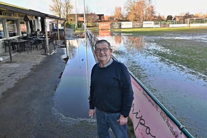Dat het hoofdplein van KOG Stasegem onder water staat is niet de eerste keer en dat blijft het bestuur grote zorgen baren. “We doen het goed in de competitie en hebben de ambitie om te promoveren naar 2e Provinciale, maar er is een grote maar”, duidt voorzitter Reginald Herpoel.