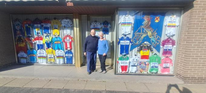 De grote verzameling truitjes is ondertussen te zien in de vitrine van de voormalige kledingwinkel van Nicole en Eric. “Als je je hele leven in de sport zit, bouw je zoiets op”, reageert Eric. “Ik ken veel mensen en dan wissel je al eens truitjes uit. Bovendien is dat ook het geval bij mijn zoon, op die manier heb je wel snel een verzameling. Het is dubbel zo fijn om die ter gelegenheid van De Ronde nog eens boven te halen.”