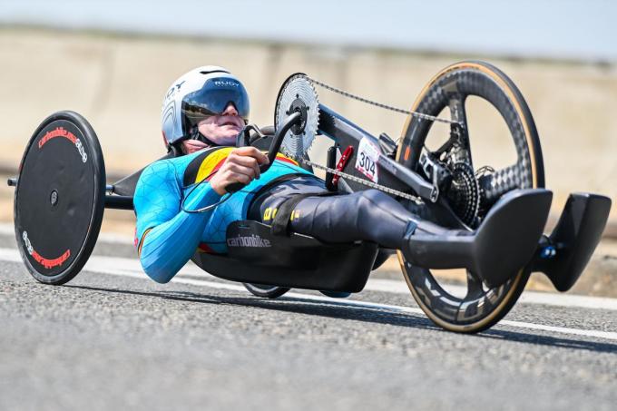 Handbiker Marvin Odent uit Hollebeke behaalde op de openingsdag van de UCI Wereldbeker G-wielrennen in Oostende een zilveren plak binnen op de tijdrit in de klasse MH3.