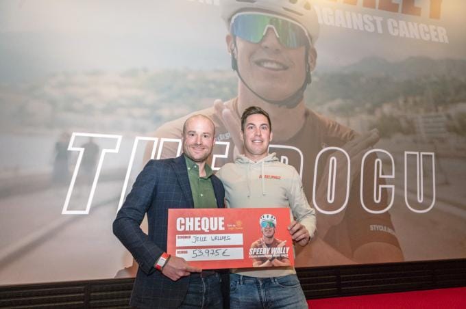 Jelle overhandigde, in een bioscoopzaal vol familie, vrienden en bekenden uit het sportmilieu, de cheque van 53.975 euro aan Tim Van Werde van Kom Op Tegen Kanker. “We zijn enorm dankbaar en kunnen meedelen dat Jelle vanaf nu peter wordt van het internationale peloton van 1.000 kilometer tegen kanker. Dat peloton, een organisatie van Flanders Classics, rijdt op 14 mei 2026 in vier etappes duizend kilometer vanuit Frankrijk naar Mechelen.”