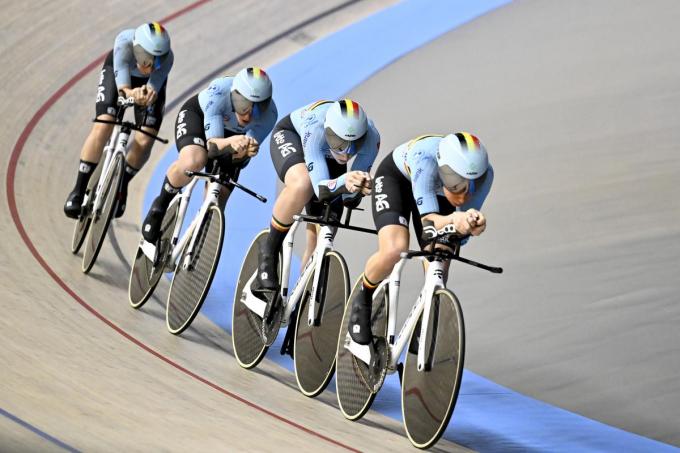 Katrijn De Clercq, Marith Vanhove, Febe Jooris en Hélène Hesters klokten in hun kwalificatietijdrit over 4.000 meter een tijd van 4:24.365. Daarmee finishten ze als zesde van tien deelnemende landen. Duitsland realiseerde de snelste tijd: 4:14.994.
