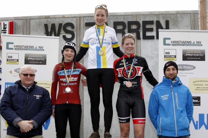 Axelle Bellaert won op het provinciaal kampioenschap in Zarren van Lara Defour en Aurelie Vermeir bij de dames elite.