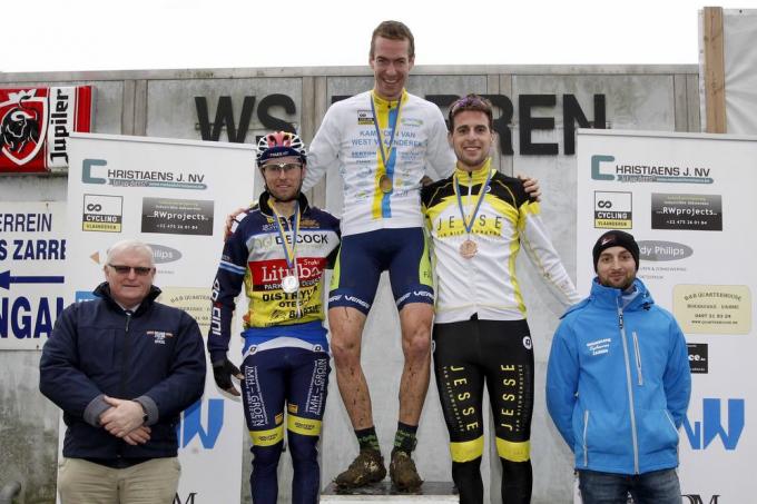 Op de foto staan de West-Vlamingen Auke Theuninck, Xavier Vanhille en Klaas Vankersschaever.