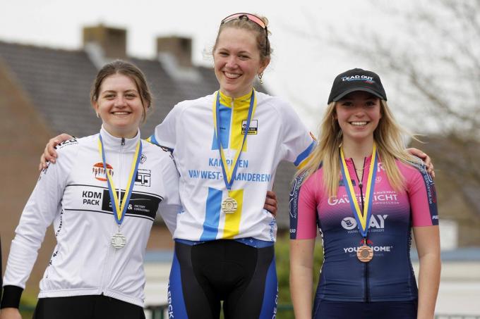 De 17-jarige Estée Fierens, tweedejaarsjuniore uit Zedelgem, heeft een eerste podiumplaats beet. Ze sloot het provinciaal kampioenschap tijdrijden in Ruddervoorde als tweede af, op 22 seconden van Lente Duhamel.