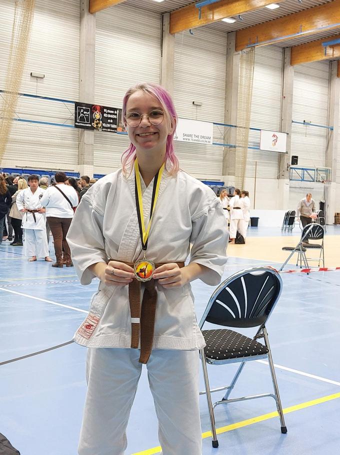 Trixie Van Lerberghe (17) verloor zondag bij de junioren nipt de finale tegen Fien Cornelis. De Oost-Vlaams kampioene uit Zottegem was een tikkeltje te sterk voor de karateka uit Avelgem. “Een finale verliezen is altijd zuur, maar voordien had ik zelf niet verwacht daar te staan”, vertelt ze. Met een tweede plaats blikt Trixie dus terug op een geslaagd weekend.