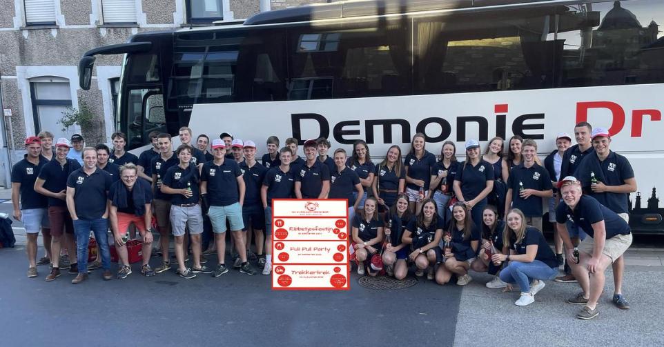 Groepsleiding? “Niemand is echt voorzitter, we zijn met acht in het bestuur: Charlotte Deconinck, Annelien Lampaert, Charles Rooze, Oscar Ryckewaert, Maxime Vanraes, Matisse Versavel, Ewoud Vandewalle en Thibault Lampaert.”