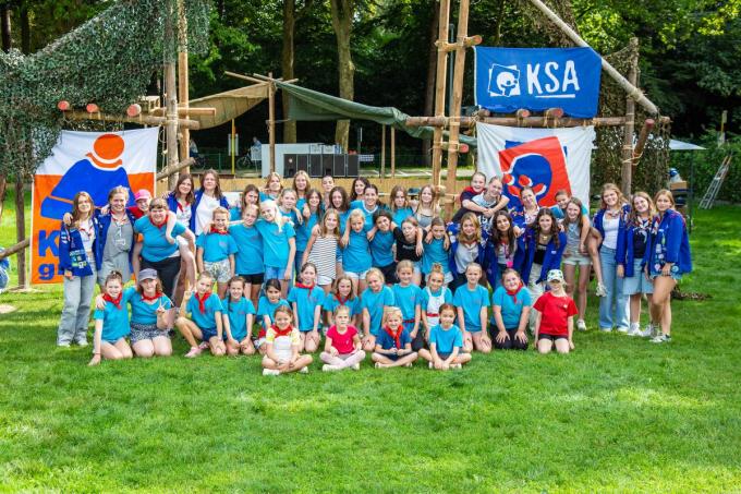 Uniform? “Felblauw KSA T-shirt en trui. Rode sjaal voor de jongsten, blauw voor de oudsten en gemengd voor de leiding. De leiding draagt ook een donkerblauw hemd.”