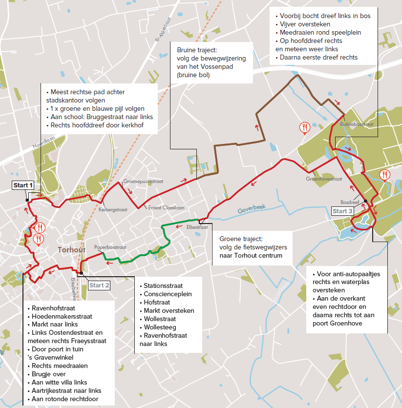 - Parking: Gratis parking aan de drie startplaatsen. Let op : eerste deel parking stadskantoor is blauwe zone.
